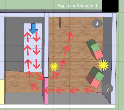 This abandoned room within the house is where the player first plays miniaturized. Along the quest, the player meets the character Tiny Tom, who the treacherous Argonians shrank a few weeks ago. This room portrays a neglected area of the house where the spiders, rats, and Tiny Tom have taken over. The player, now tiny, encounters all of the familiar objects of Skyrim, but from a new and interesting perspective. The design plays a lot with height as the player moves up and down furniture via miniature walkways. When the player emerges from the dollhouse, they immediately experience a typical Skyrim room as an epic vista.